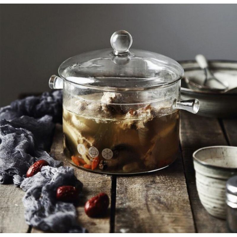 Panci masak kaca tahan panas / Panci sop kaca/ heat resistans glass stewing soup pot