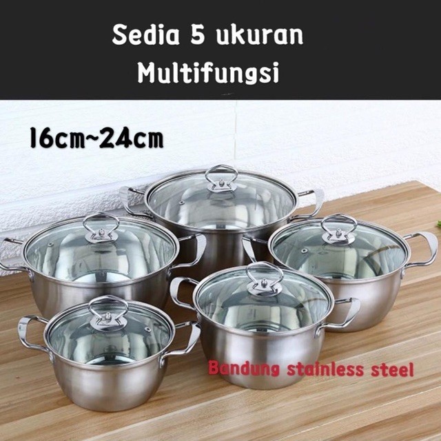 Panci sup soup pot 16cm 18cm stainless steel Silver Gold tutup kaca murah kecil BOX
