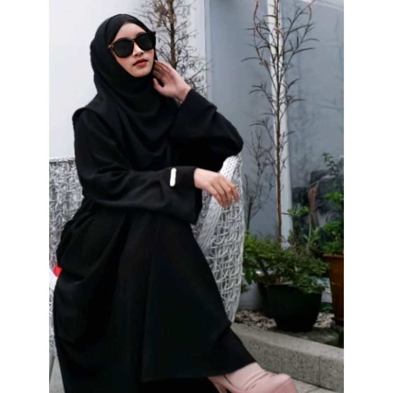 Abaya Polos Hitam Arab Saudi Baju Umroh Wanita Terbaru - Hitam, S