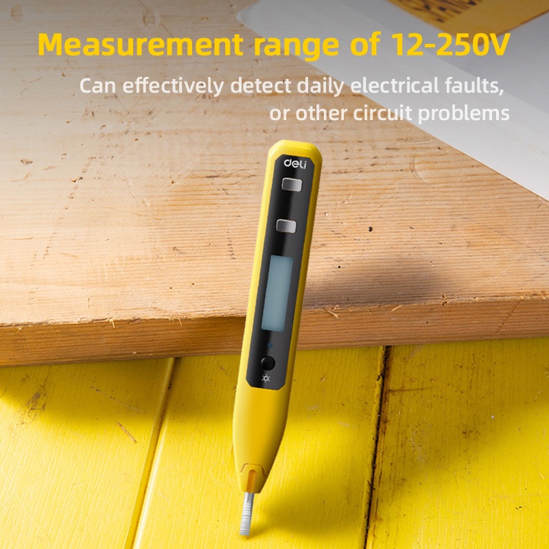Deli Digital Test Pen Tespen Digital 12-250V AC DC 14 cm DL8005 Alat Perkakas