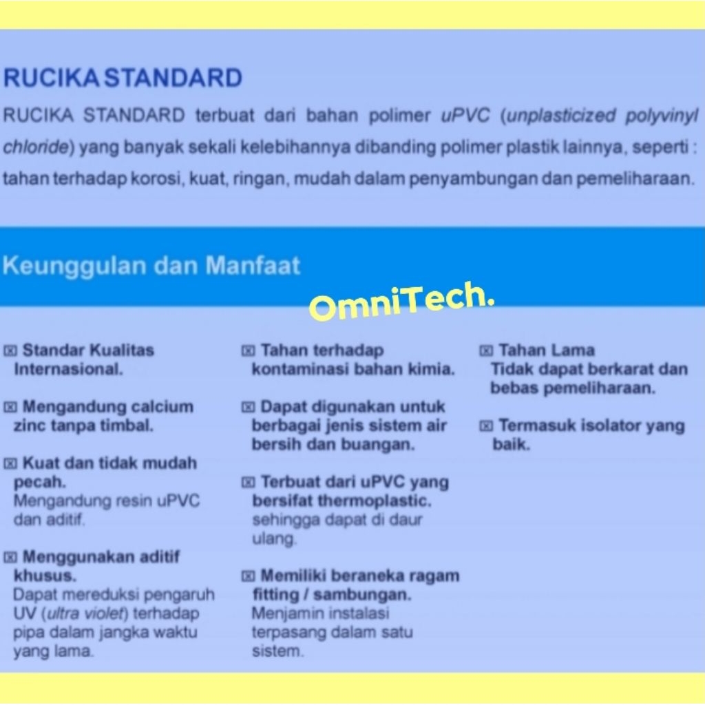 Pipa Air Paralon PVC AW Biru Rucika 1/2" Inci Potongan 1 Meter Meteran 100 cm 1M