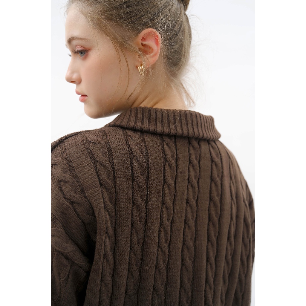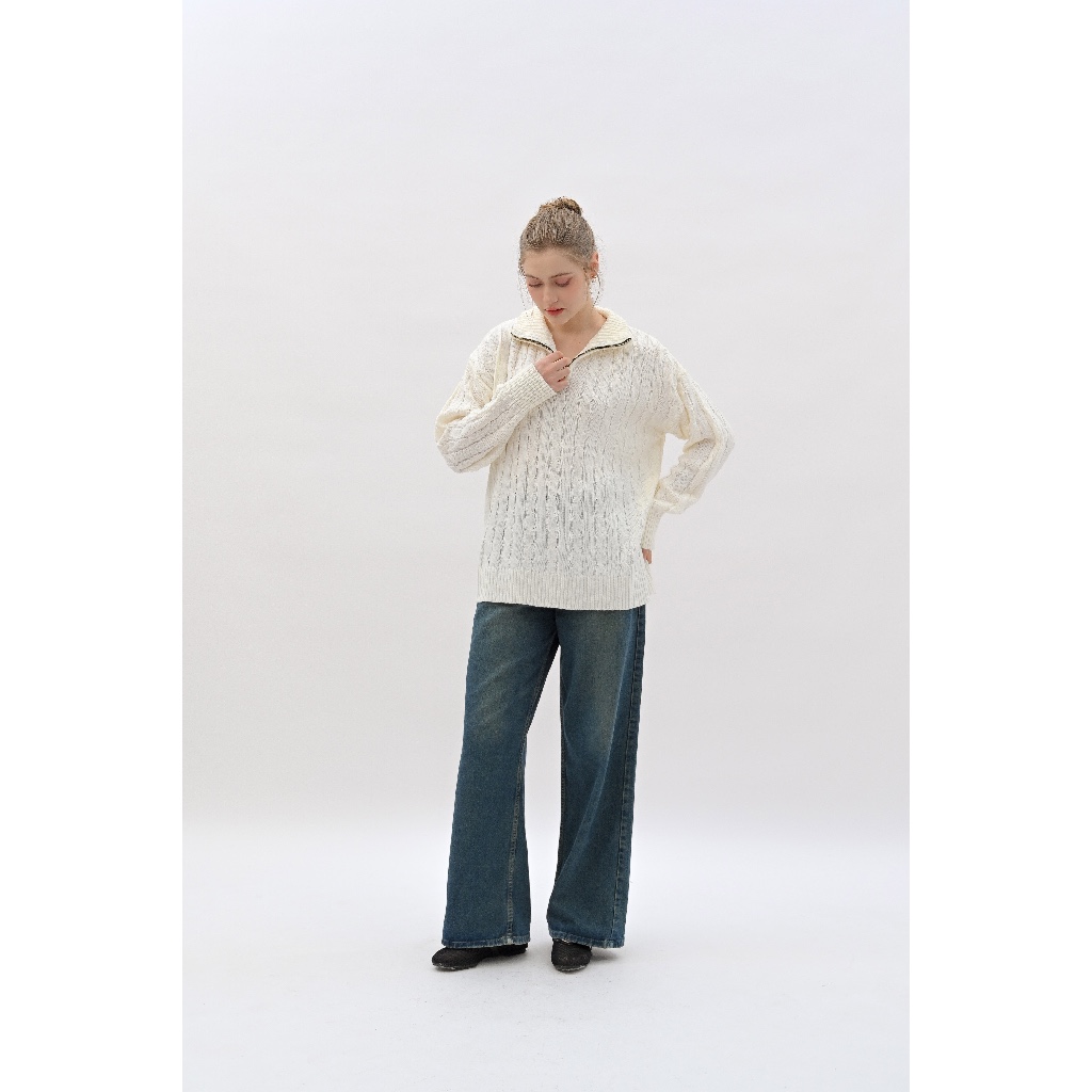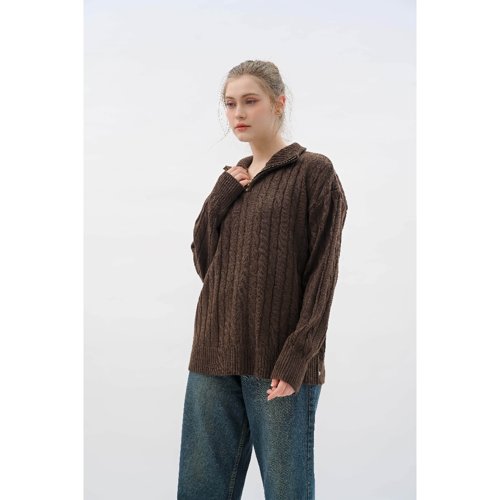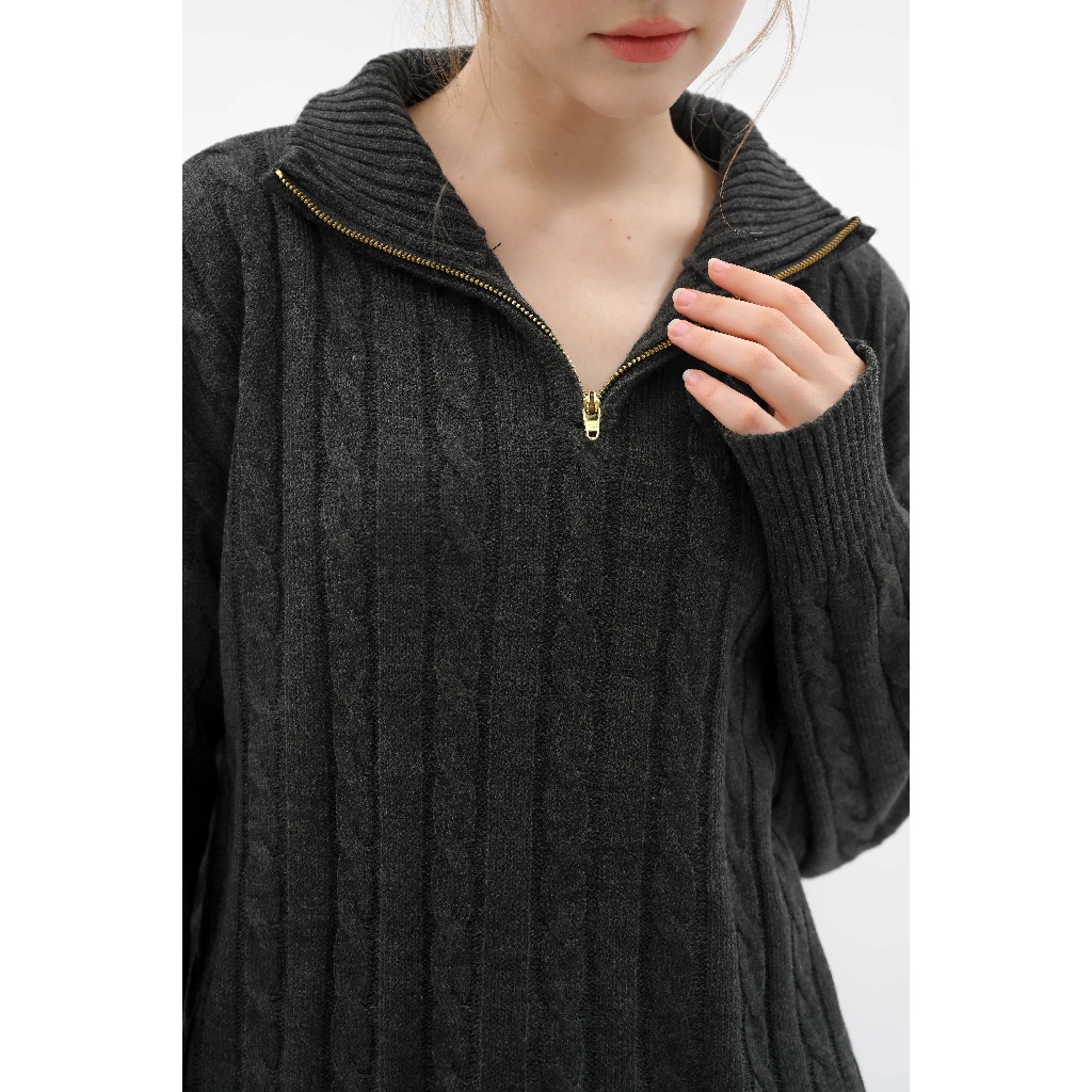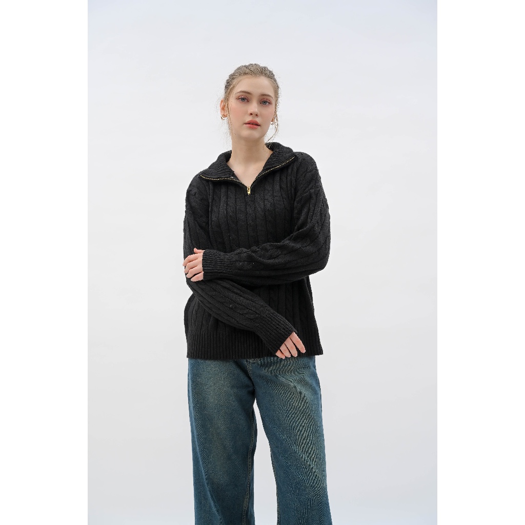 Nigoo Zoe Half Zip Knitwear Cable Sweater Wanita