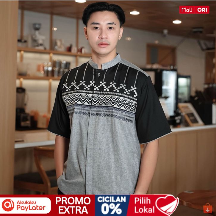 BAJU KOKO MUSLIM PRIA TERBARU LENGAN PENDEK KATUN MADINAH WARNA AG14