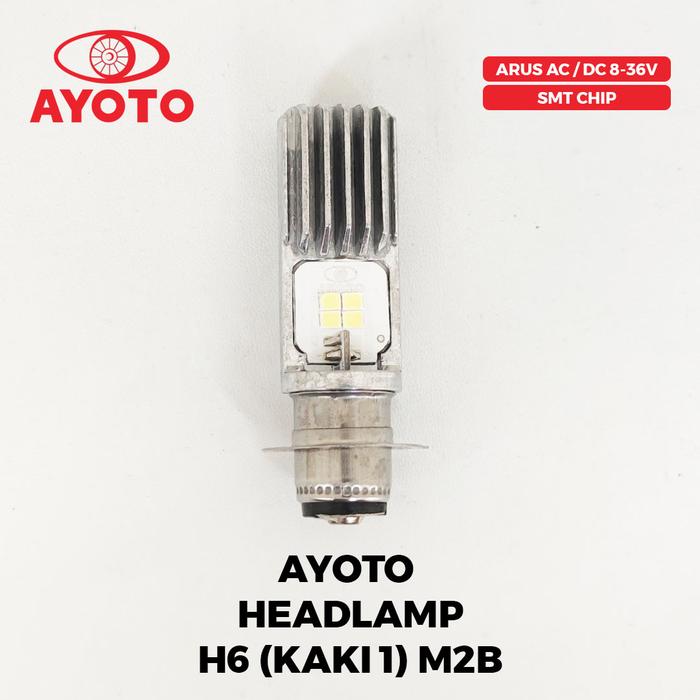 DIJAMIN ORI ! AYOTO LAMPU DEPAN HEADLAMP H6 KAKI 1 LED M2B AC DC MOTOR MATIC BEBEK - PUTIH-PUTIH LARIS
