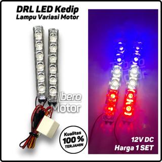 DIJAMIN ORI ! LAMPU LED STROBO KEDIP MOTOR 12 LED FLASH UNIVERSAL - BIRU MERAH LARIS