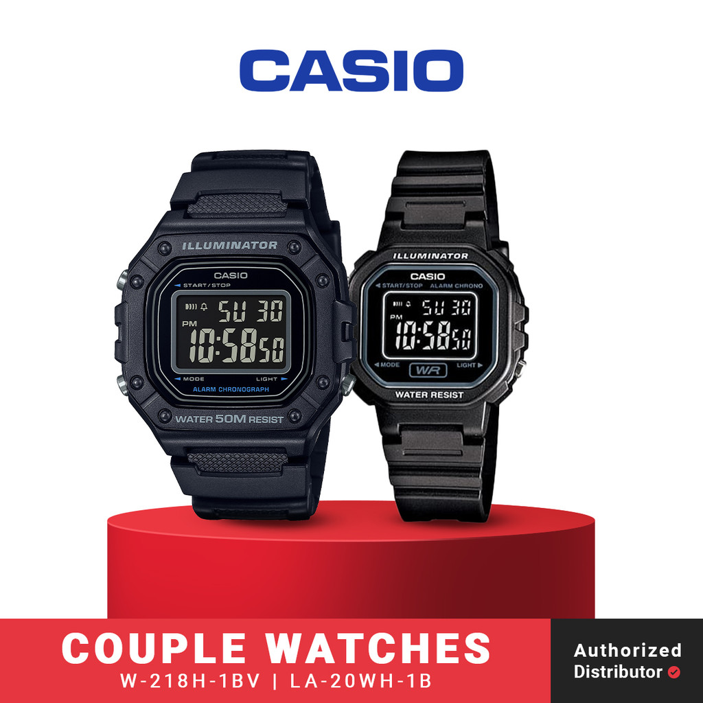 Jam Tangan Digital Couple Casio General W-218H-1BVDF x LA-20WH-1BDF Original Black