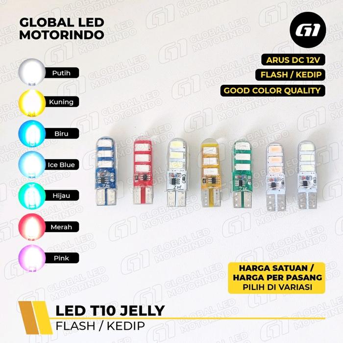 DIJAMIN ORI ! T10 JELLY 6 MATA KEDIP / HARGA SEPASANG SENJA DC 12V - MERAH LARIS