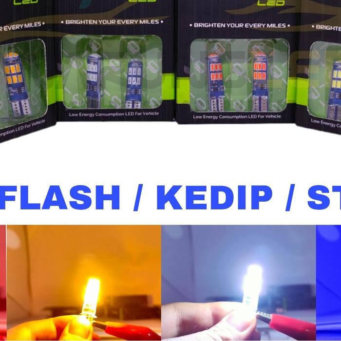 DIJAMIN ORI ! LAMPU LED T10 KEDIP 9NINE LUXIMOS LED SENJA SEIN PLAT MUNDUR 15 TITIK SET - PUTIH LARIS