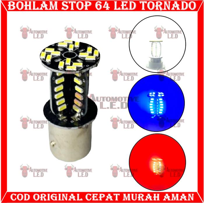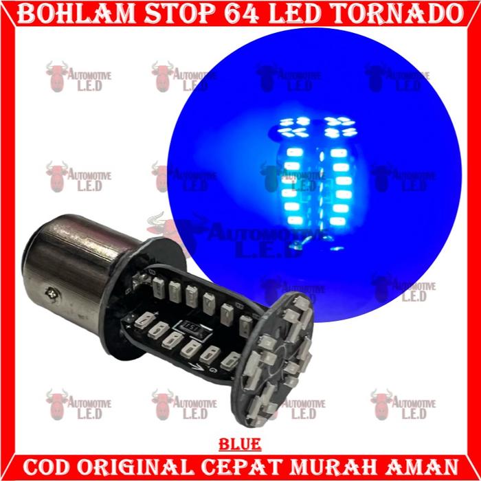 DIJAMIN ORI ! ORIGINAL BOHLAM STOP 64 LED TORNADO | LAMPU REM MOTOR 64 LED TORNADO 1157 REM CAR - BIRU LARIS
