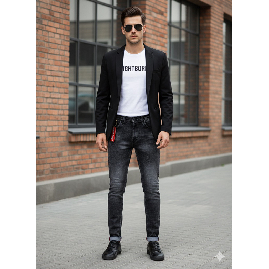 LIGHTBORN Celana Denim Pria Roger Wolfy Snow Black, Slimfit Selvedge, Long Pant Men