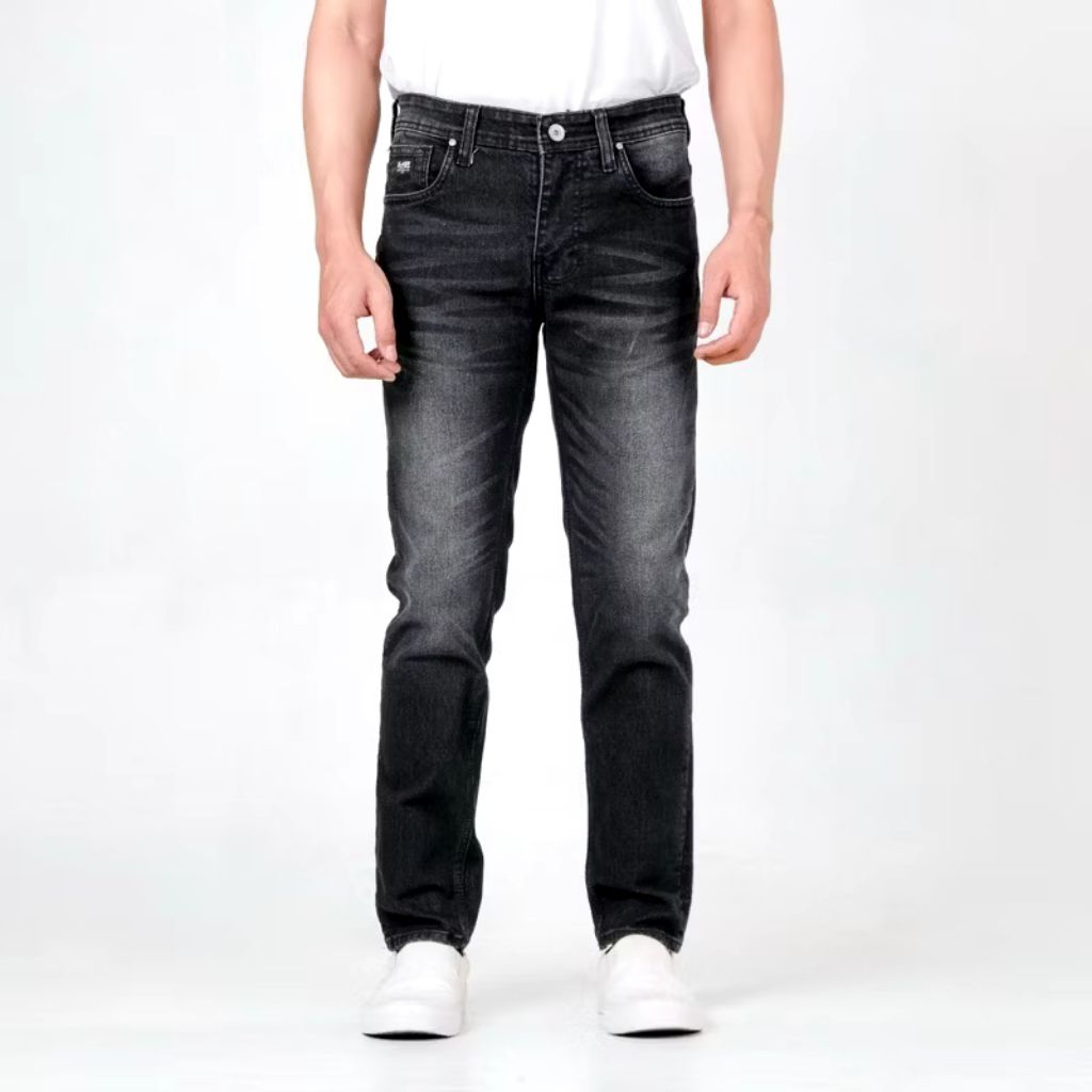 Celana Jeans Pria Panjang Slimfit Skinny Wisker Hitam Blackjazz Denim Premium