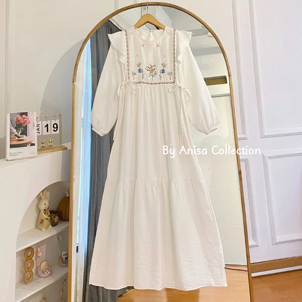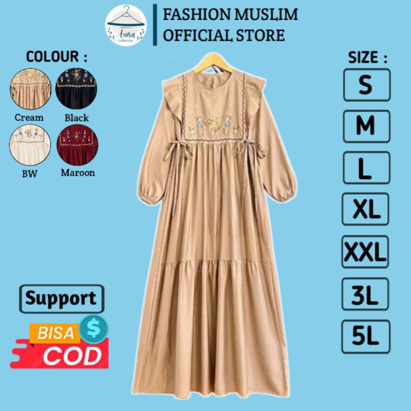 Cherika Dress - Gamis Bordir - Size S M L XL XXL 3L 5L - Gamis Jumbo Bahan Polo Linen
