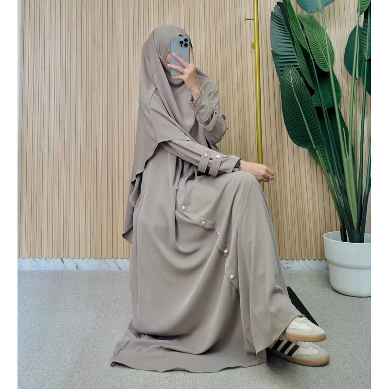 Gamis Syar'i terbaru umroh haji hitam abaya Arumi Set Khimar French Bahan Crinkel Ukuran M L XL XXL