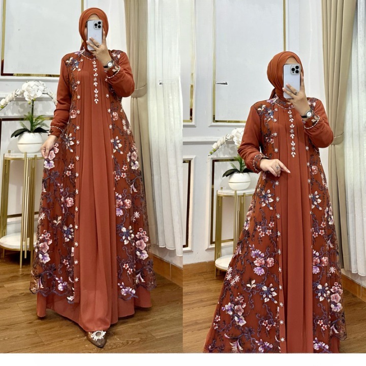 Gamis Terbaru Elegan Mewah Misela Dress BO Size M L XL XXL 3XL LD 100-120 CM PB 140 CM Bahan Tille Garden Premium Mix Ce