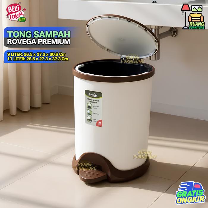Tempat Sampah Tong Sampah Injak Tempat Sampah Rovega Lily Original Dust Bin 11 Liter Tong Sampah Murah - BROWN 9 LITER