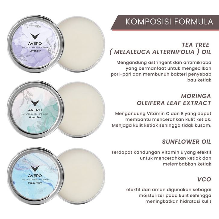 Deodorant Balm Avero Solid Deodoran Ketiak Alami BPOM Tanpa Alkohol & Alumunium Pewangi Ketiak
