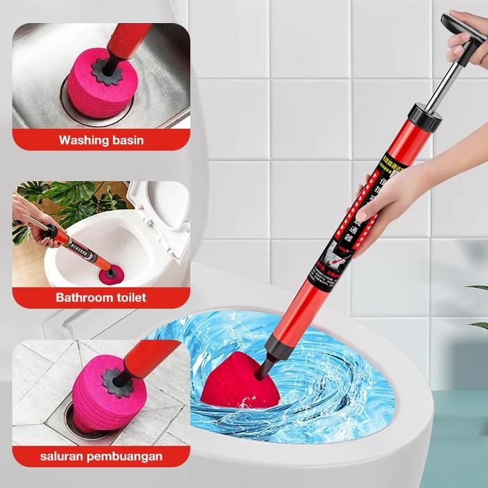 Penyedot WC Fleksibel Pump Toilet Plunger Pompa WC Duduk Mampet Alat Pembersih Saluran Tersumbat - WC merah 1pc