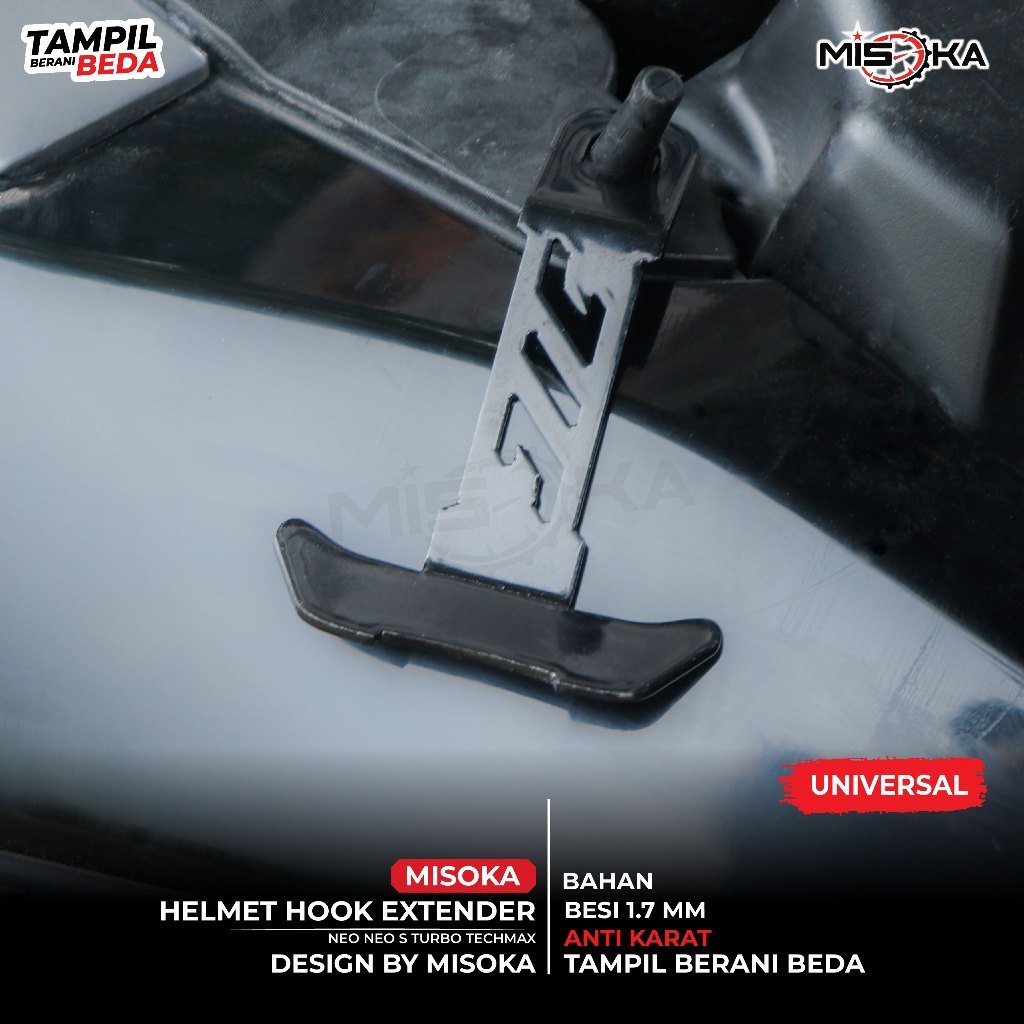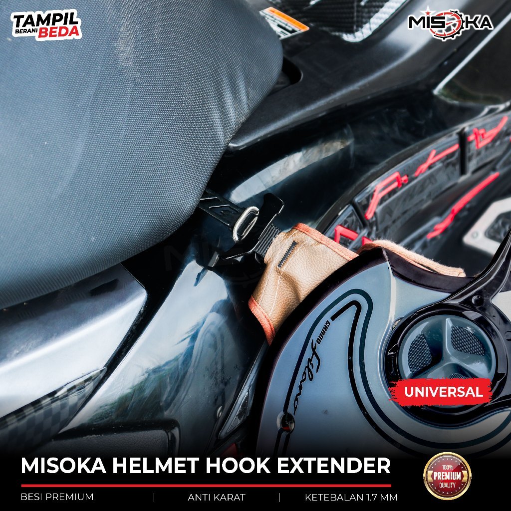 Misoka Helmet Hook Extender Gantungan Penggait Helm Jok Motor Universal Besi Anti Karat 1.7mm Desain Compact Ringan Kuat