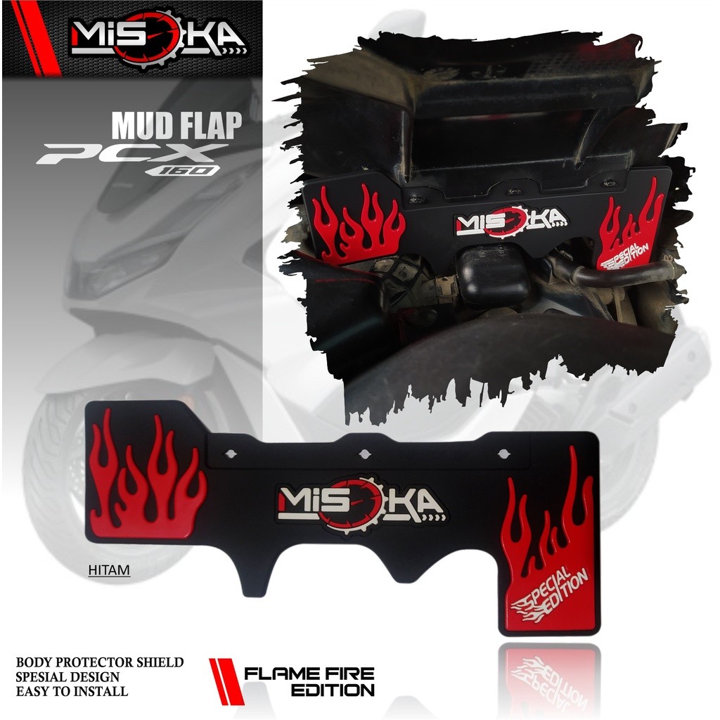 Misoka Mud Flap Pcx 160/Penahan Lumpur/Rubber Karet/Aksesoris Motor Honda murah Variasi Api