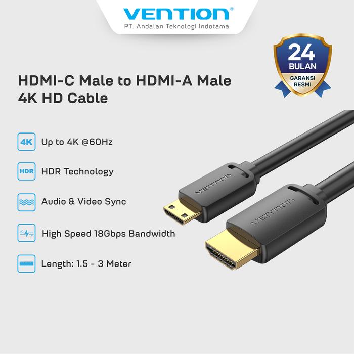 Vention Kabel HDMI-C to HDMI-A Male 4K 60Hz Ultra HD 1M 2M 3M - AGH - Black 3M
