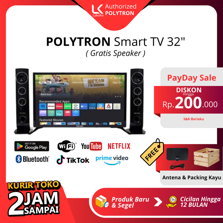 [ 𝙁𝙧𝙚𝙚 𝙎𝙥𝙚𝙖𝙠𝙚𝙧 ] POLYTRON Smart TV 32 inch FHD PLD 32TC1865