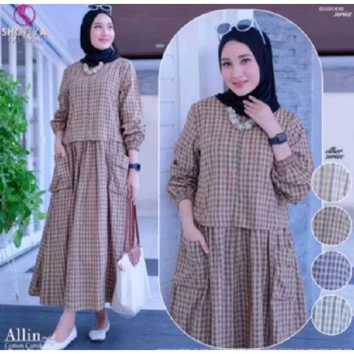 Alin Gamis Midi Motif Kotak Kecil Terbaru//Gamis Terbaru