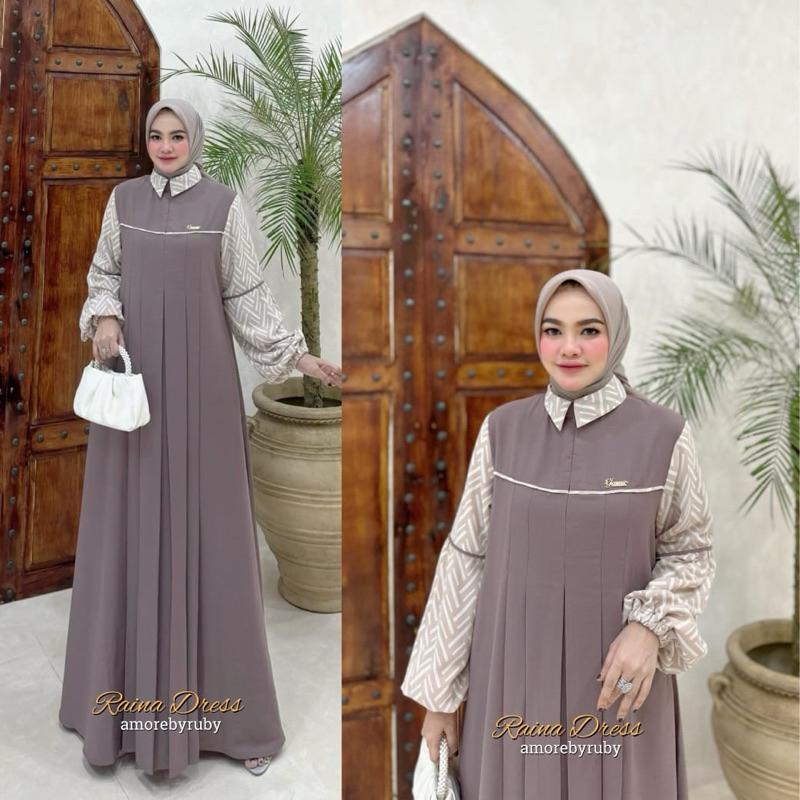 RAINA DRESS MUSLIM AMORE BY RUBY GAMIS KEKINIAN MOTIF BUNGA CERUTY BABYDOLL MIX POLOS BUSUI