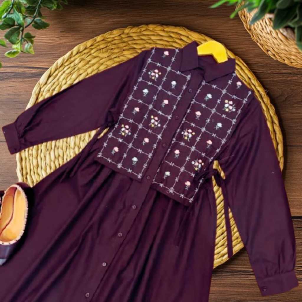 Dania Gamis Bordir Timbul Terbaru 2025 Mewah Kekinian Dress Kondangan Wanita Simple Elegan Crinkle