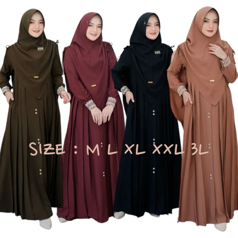 (Harga Grosir ) Gamis Syari Mawwadah set Hijab Terbaru Bahan Crinkle Airflow Premium Ukuran Jumbo M L XL XXL Dress Busui