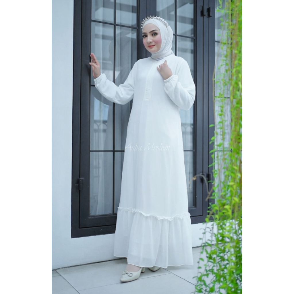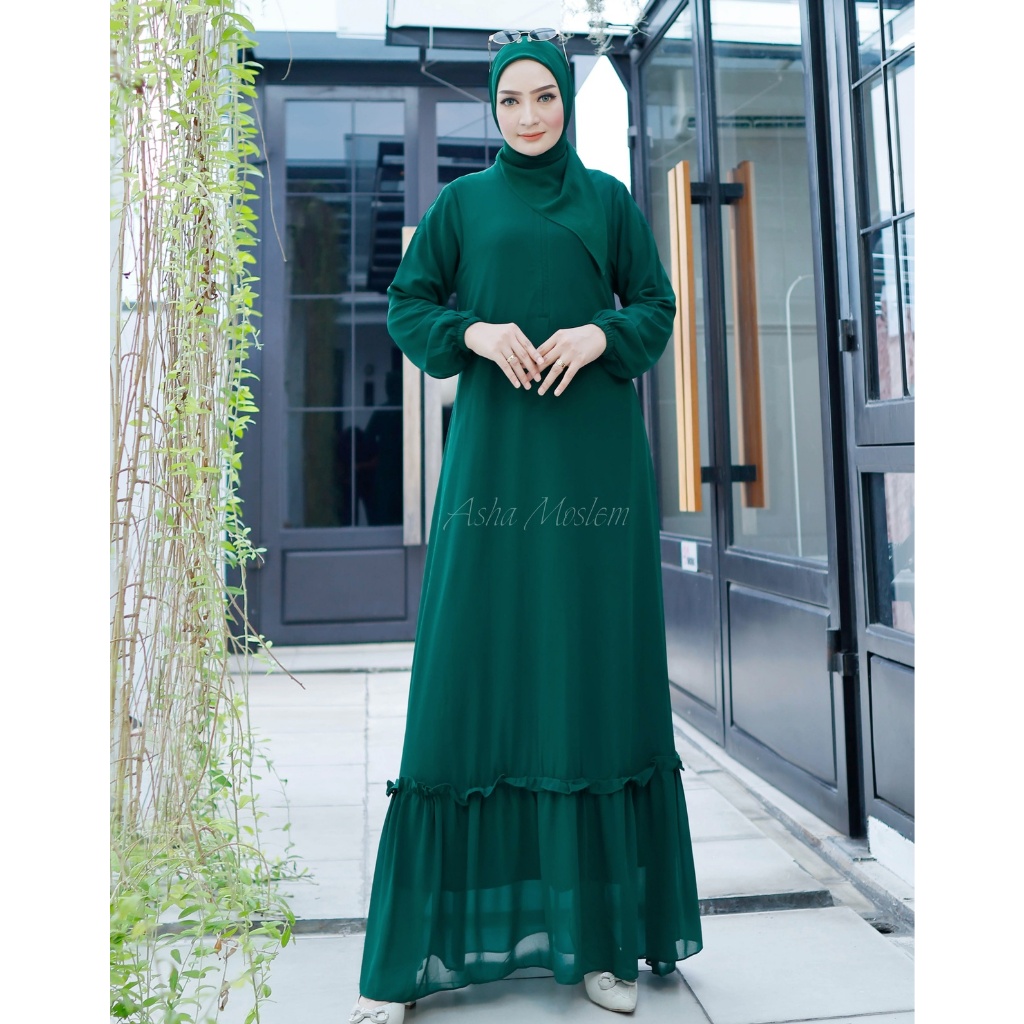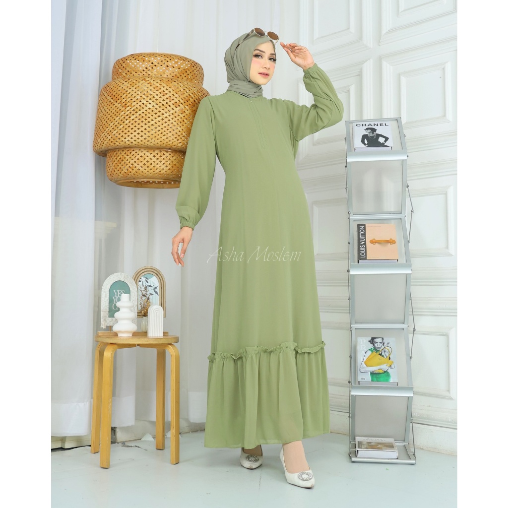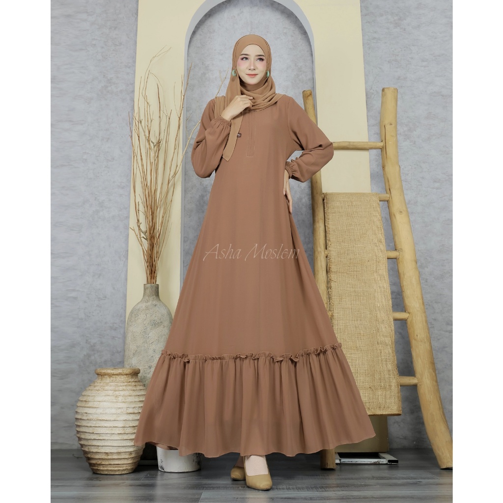 Asha Moslem Gamis Polos Rempel Bawah Ceruti Premium