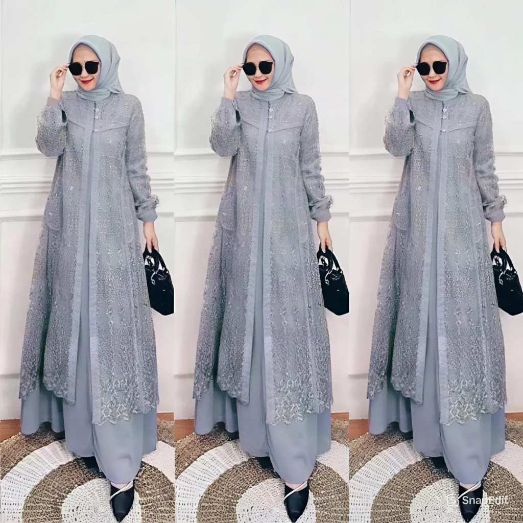 Hayya Dress / New Brukat / Gamis Muslim Dress Crinkle Mix Brukat Hayya Dress Gamis Pesta Mewah