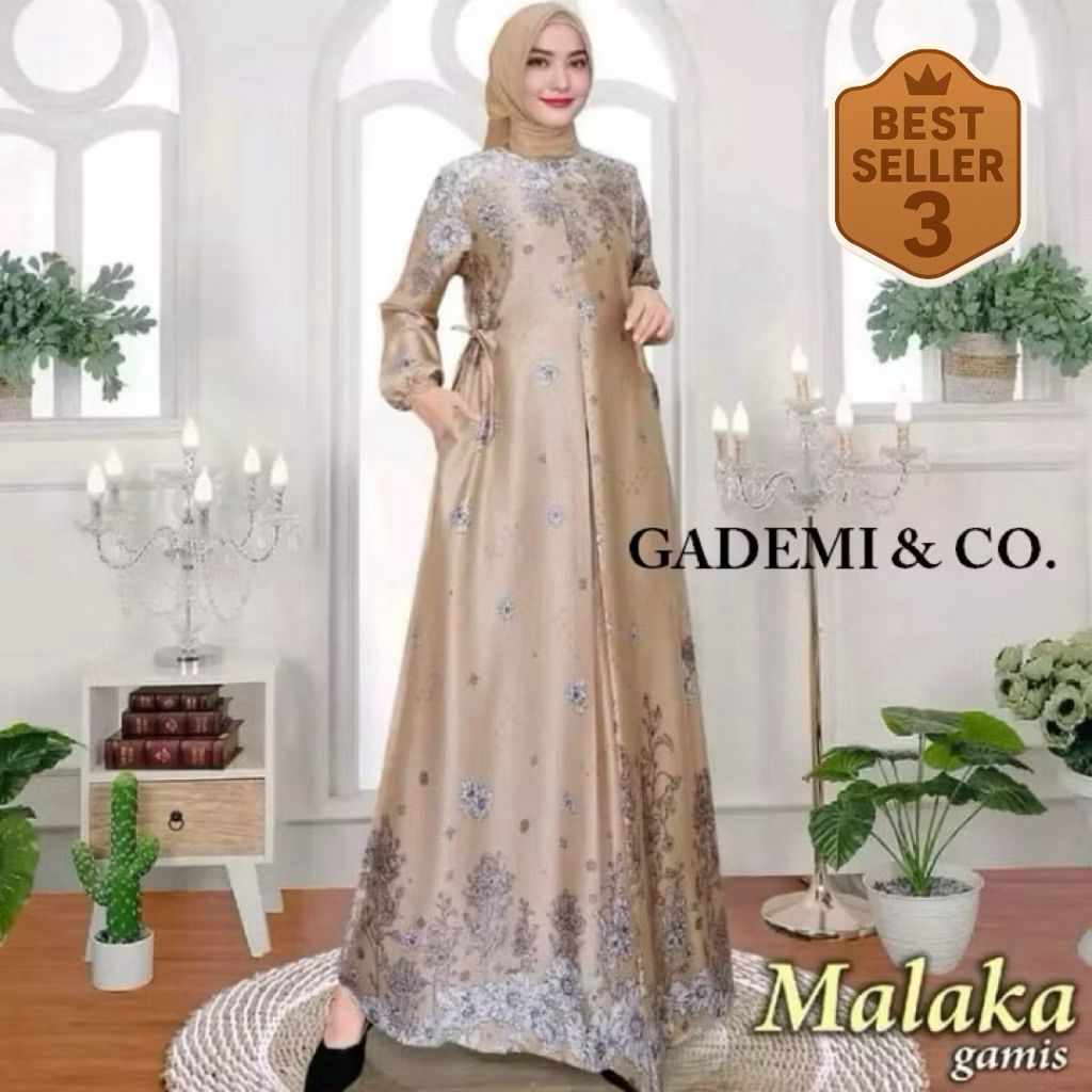 [TERLARIS] Gamis silk premium/Gamis motif/Motif MALAKA. Size ready M,L,XL,4L&,6L