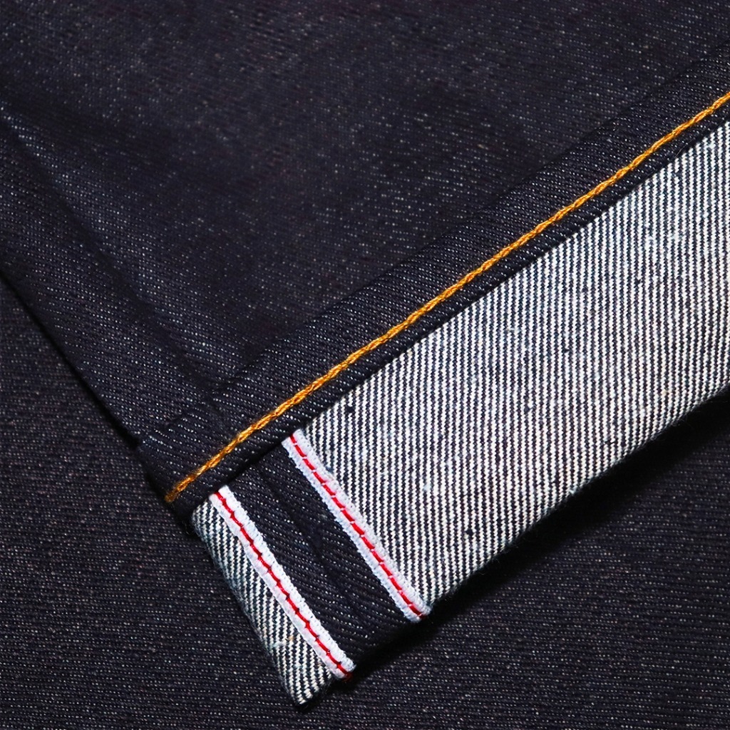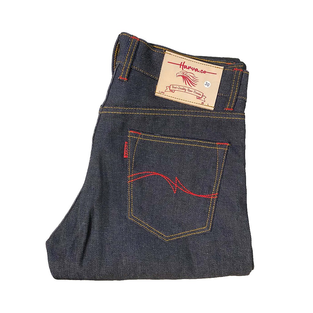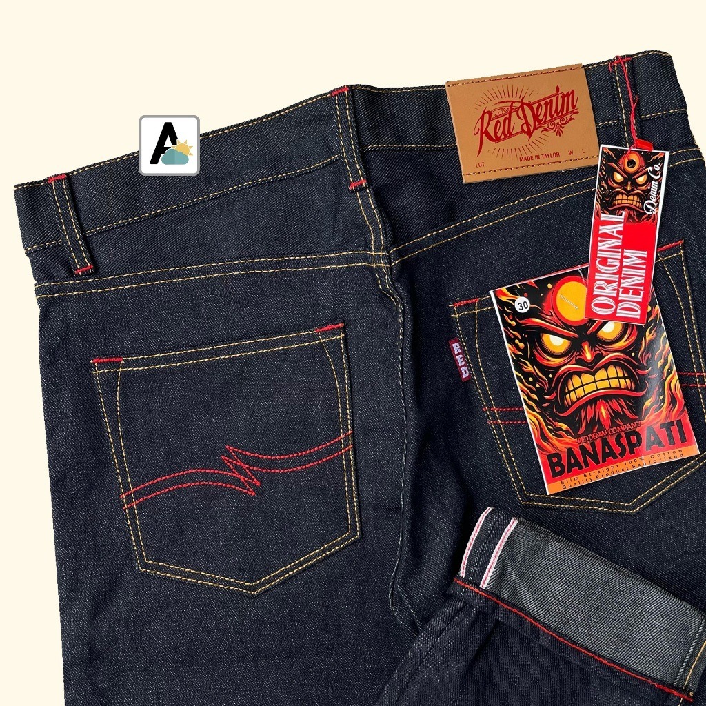 celana raw denim selvedge accent 15 - 16 oz slim straigh non streacth.