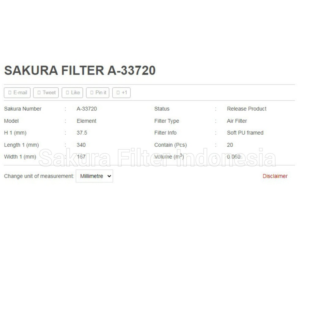 Filter Udara Toyota Etios Valco 1.2cc Bensin (2013-2018) Sakura A-33720