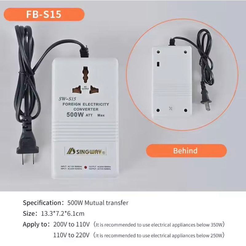 SINGWAY SW-S15 Step Down & Step Up Transformer Trafo 110V 220V 500w