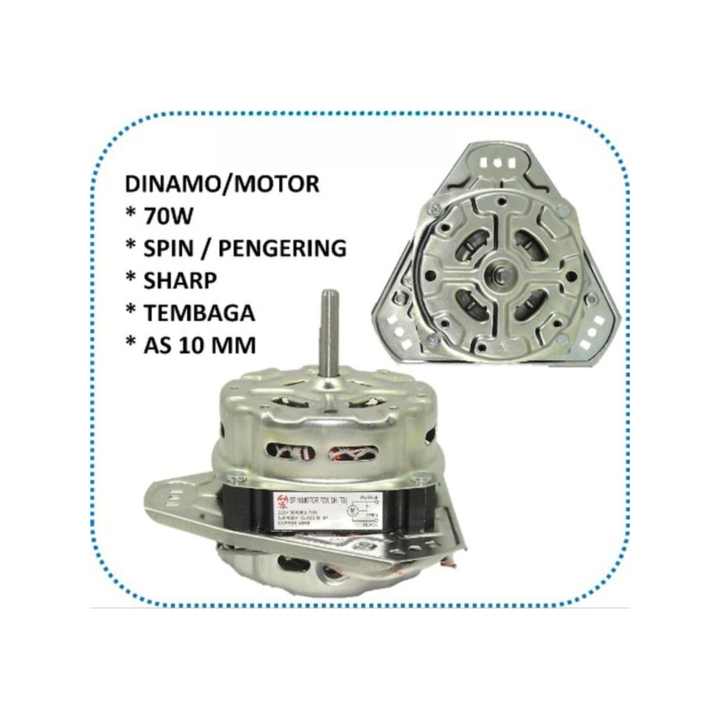 YIROSHI DINAMO MOTOR PENGERING SPIN SHARP MESIN CUCI 2 TABUNG AS 10MM 70W TEMBAGA ALUMINIUM
