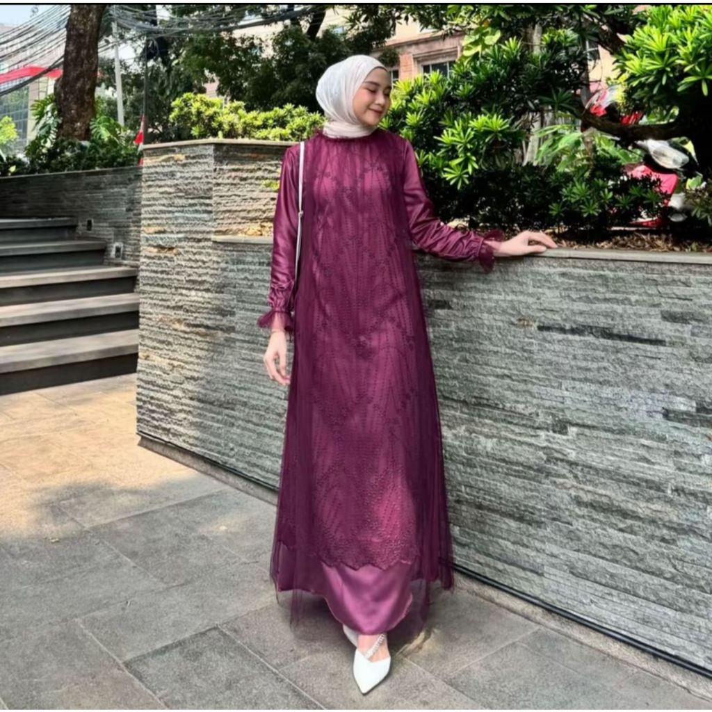 REVINNA DRESS BRUKAT KONDANGAN TILLE GARDEN MIX SILK ROBERTO DRESS LEBARAN TERBARU