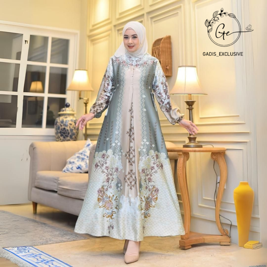 DRES GAMIS NARISSA ETNIK SILK PREMIUM/MOTIF TERBARU/TANGAN BALON/BUSUI DRESS MUSLIM