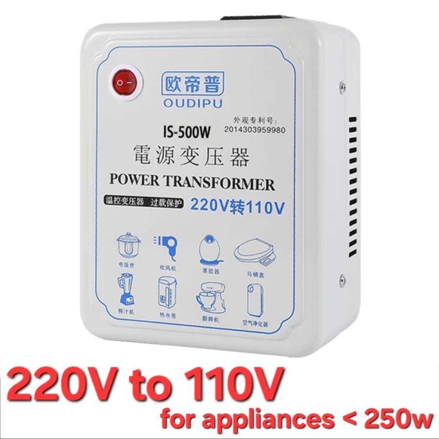 OUDIPU IS-500W Step Down Transformer Trafo In 220V Out 110V 110V 120V for 250w Appliances