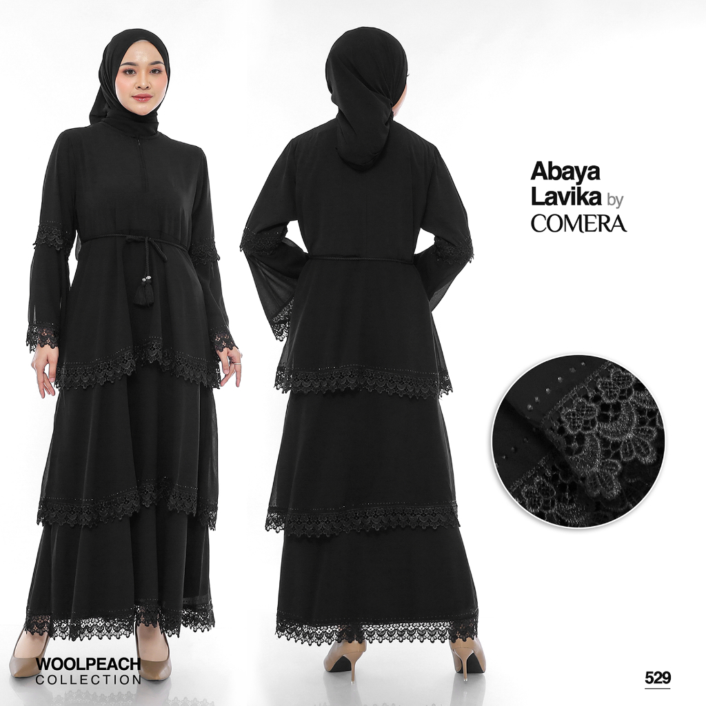 Comera - Abaya Lavika Gamis Turkey Maxi Hitam Renda Ceruty Wolfis Dress Lebaran Pengajian Umroh 529