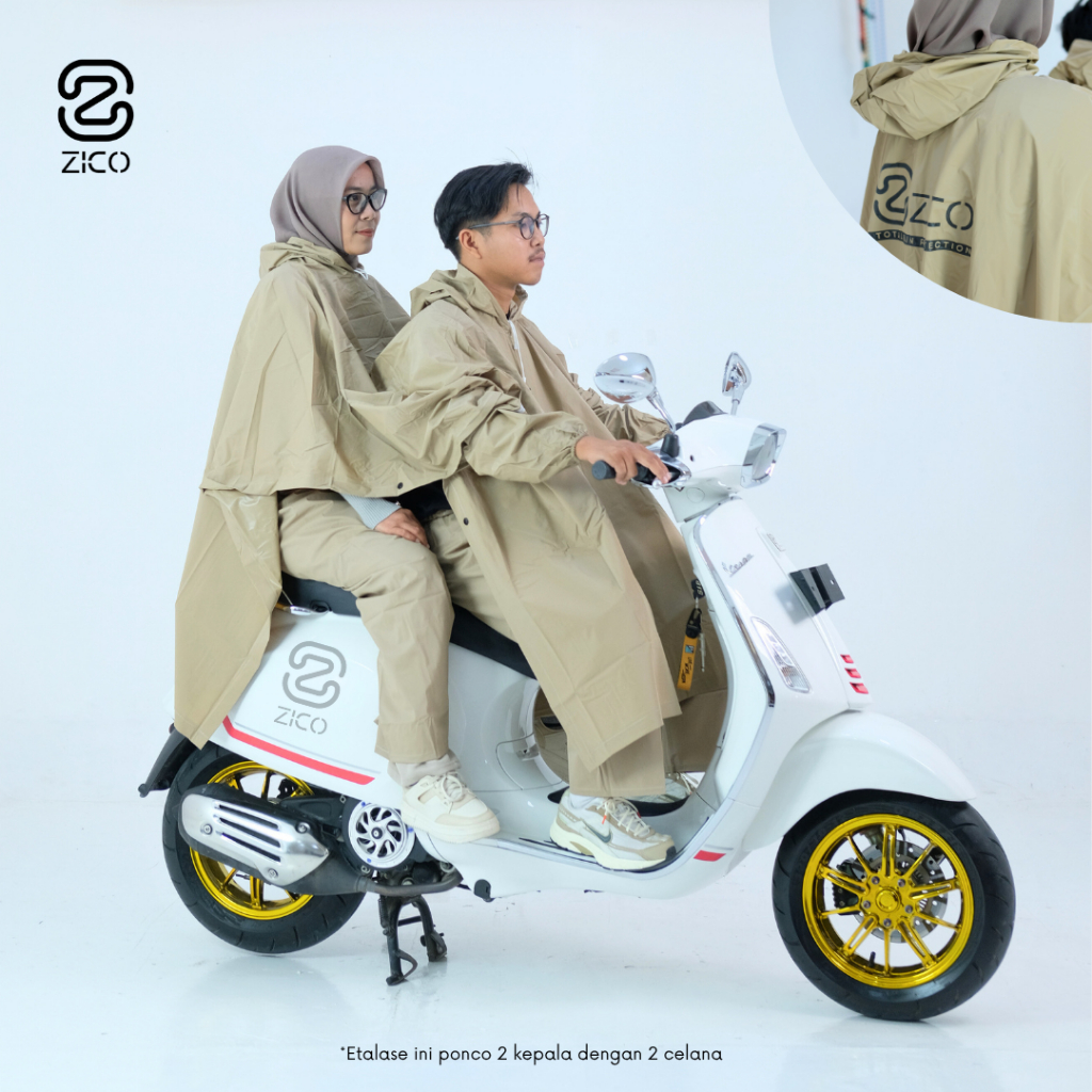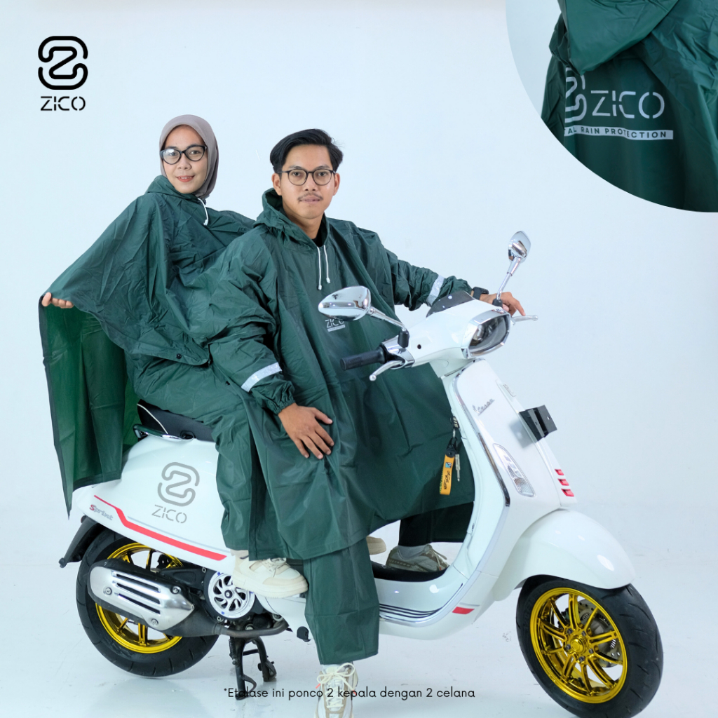 Jas Hujan Ponco Dua Kepala 2 Celana Jumbo Pria Wanita Dewasa Full Hot Press Tanpa Jahitan PVC ZICO