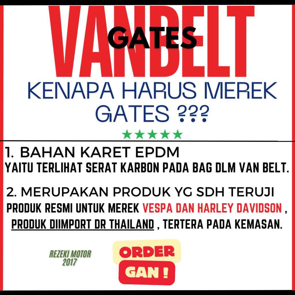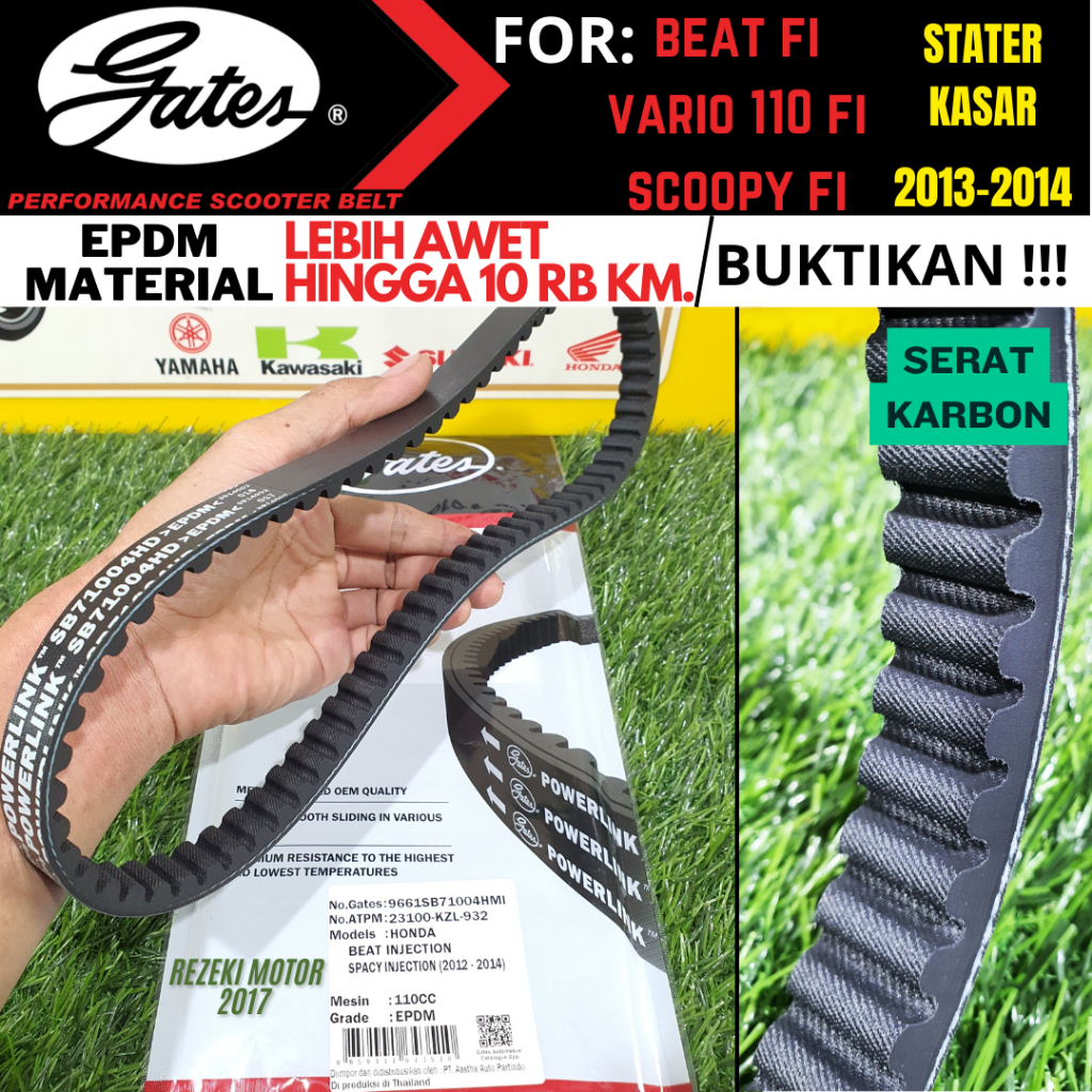 VAN BELT V BELT VANBELT RACING GATES THAILAND HONDA ALL BEAT FI , ESP DELUXE , SCOOPY FI ESP / ALL VARIO 110 / GENIO SPA
