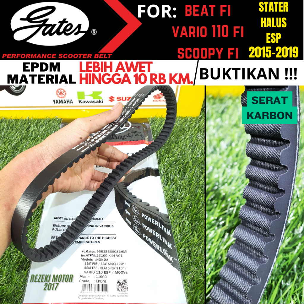 VAN BELT V BELT VANBELT RACING GATES THAILAND HONDA ALL BEAT FI , ESP DELUXE , SCOOPY FI ESP / ALL VARIO 110 / GENIO SPA