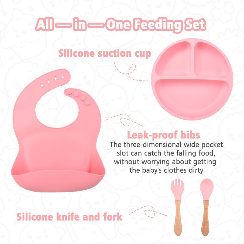 COOKGLORY Set Piring Makan Bayi Silikon - Piring Silikon Bebas BPA & Set Makan Penting