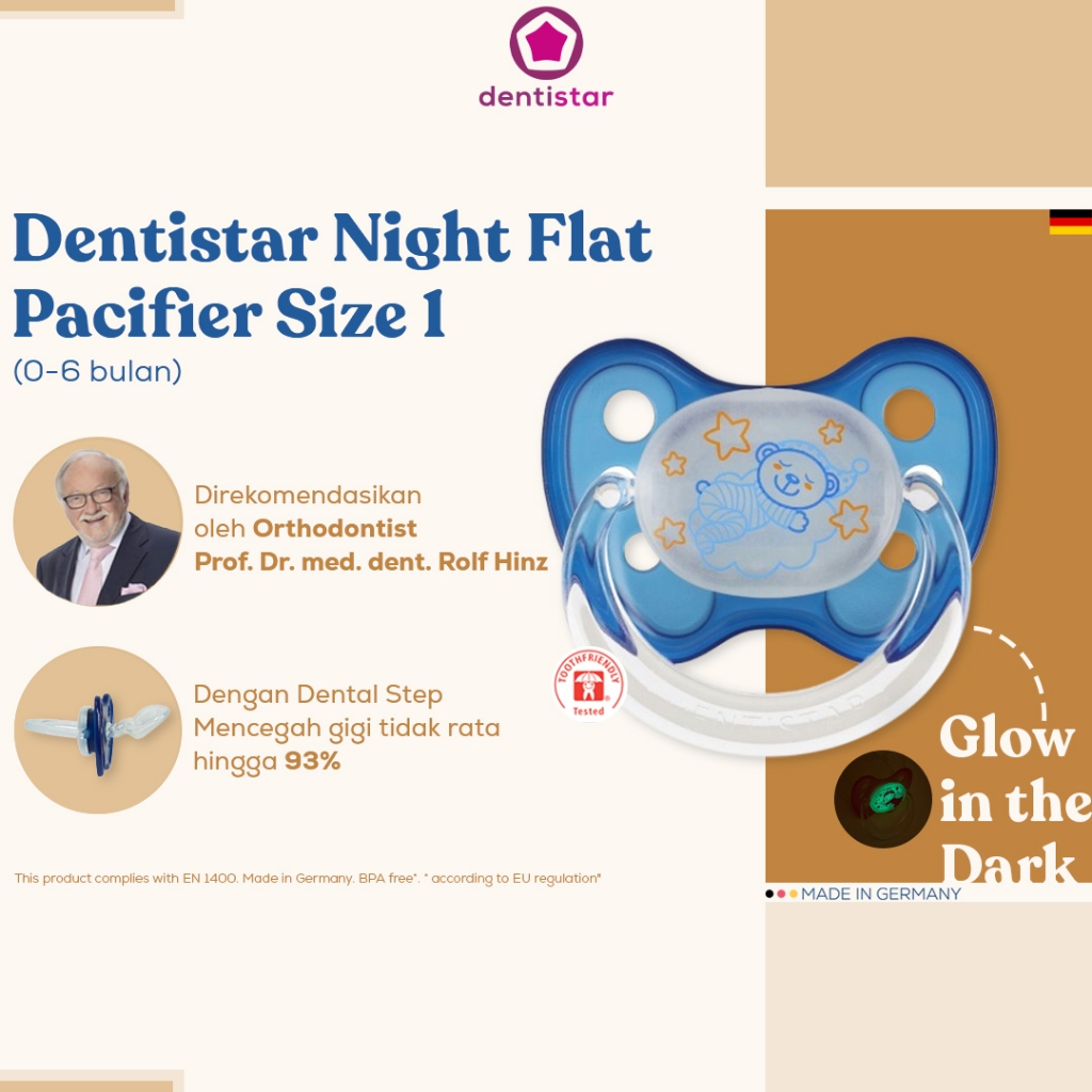 Dentistar Flat Shield Pacifier 0+ (Size 1) - Night (0-6 Bulan) / dot bayi / Empeng Bayi