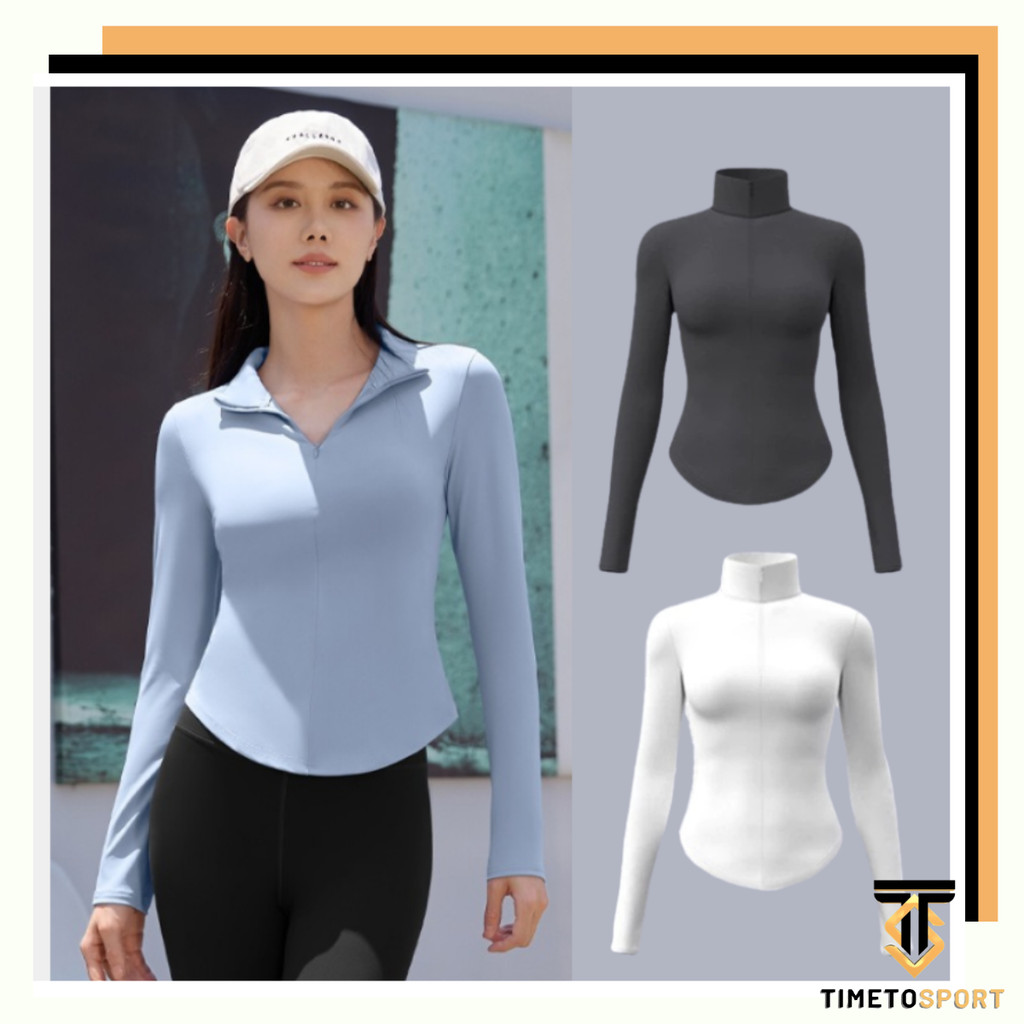 TIMETOSRT Baju Atasan Olahraga Wanita Lengan Panjang T-Shirt Yoga Tenis Padel Bodyfit 1230