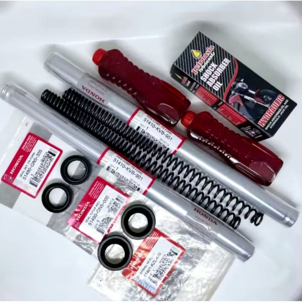 PAKET AS SHOCK SOK DEPAN BEAT KARBU VARIO CARBU SCOOPY OLD SPACY LAMA HONDA KVY KVB 1set 2pc as shock 2pc per shock 2pc seal abu 2pc seal shock 2pc oil shock