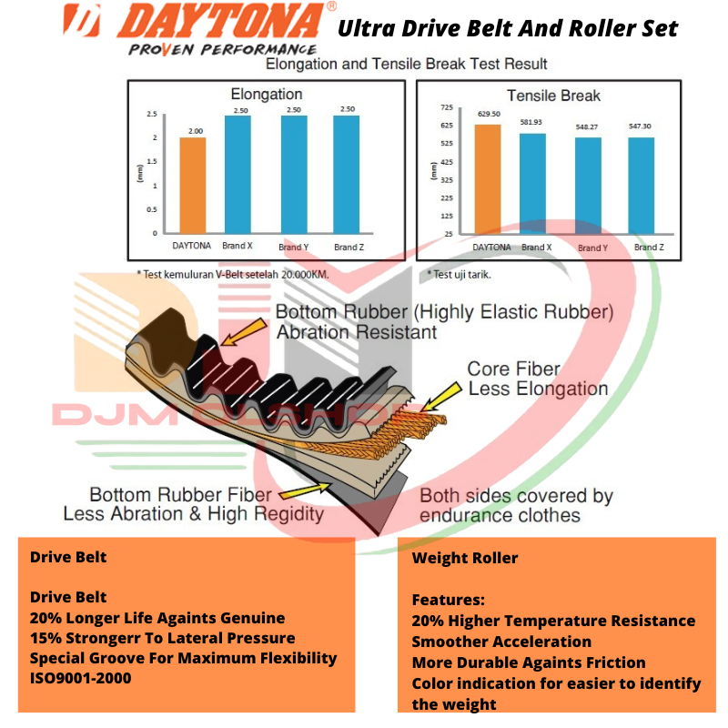 Vanbelt Daytona Set V-Belt Ultra Drive Beat Scoopy Spacy Vario 125 Vario 150 Mio Sporty Fino Mio J Mio M3 Nmax Xeon Aero