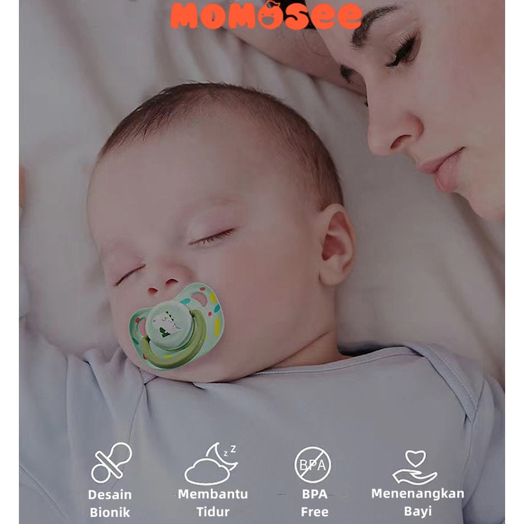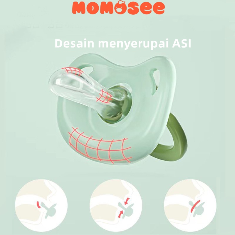 Momosee Dot Empeng Bayi Datar Silikon BPA Free Empeng Bayi 0 Bulan Free Kotak Empeng BB14