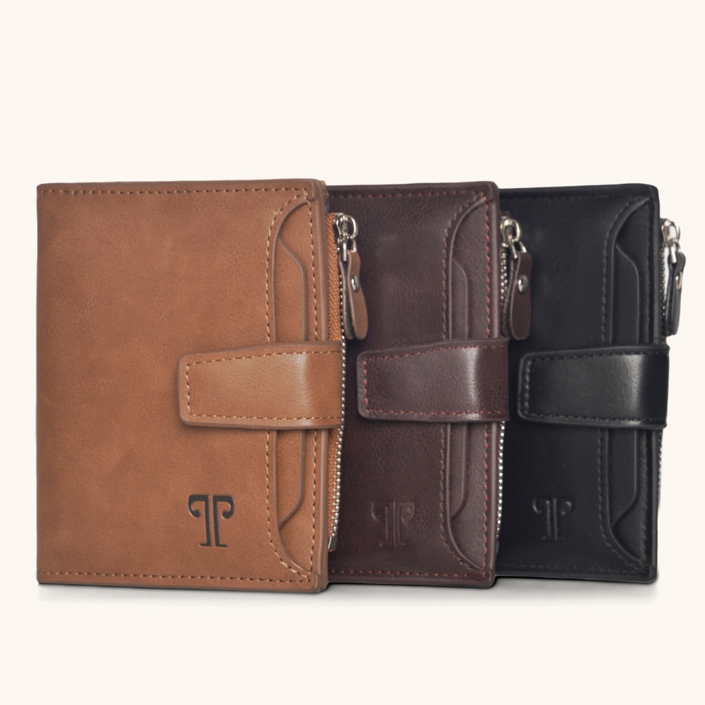 TROY Dompet Lipat Pria Koin Resleting Bahan Kulit PU Original Premium Mewah Awet Hitam Coklat Hyde